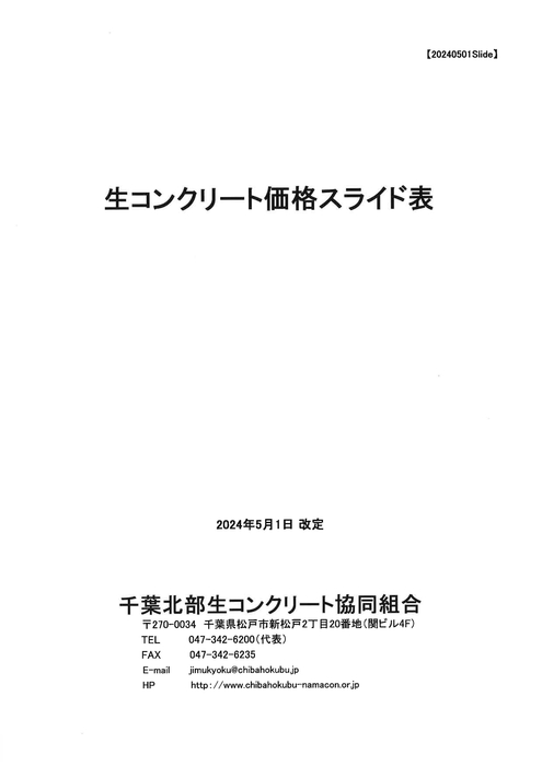 生コンクリート価格スライド表 (2024-04-01 ・ 909KB) |