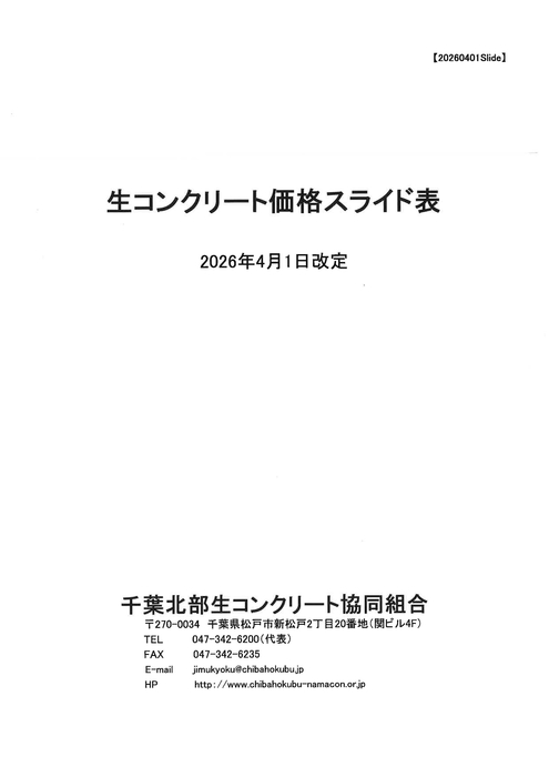 生コンクリート価格スライド表2026.4.1改定 ( 884KB) |